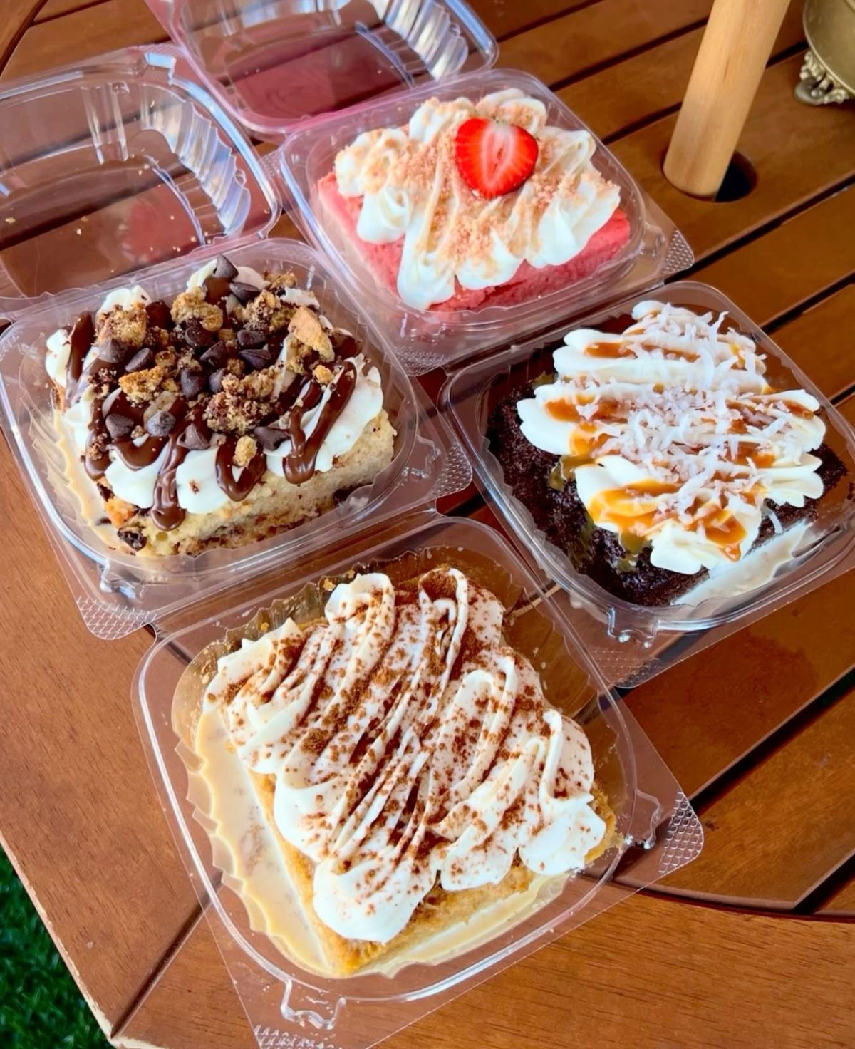 This is our triple milk cake… a very moist vanilla cake soaked in three different kinds of milk. Very rich and thick milky content